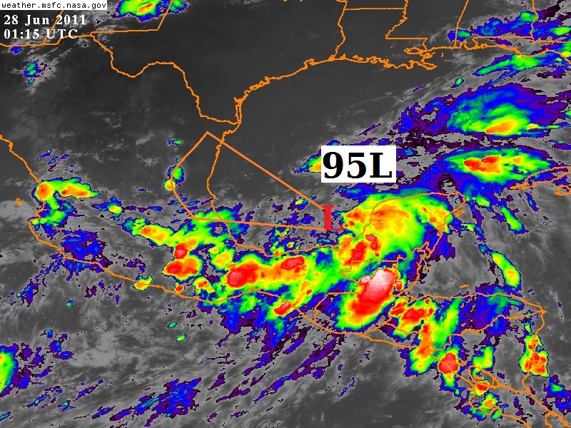 In this case, track is easier to forecast than intensity is. 95L will generally move west-northwest across the Bay of Campeche while slowly intensifying and organizing. 95L should be in the area on the Mexican east coast near Tampico in about 48 hours, and I believe it will be a weak Tropical Storm at the time of landfall. I do want to mention that the possibility exists for a quick organization and intensification if climatology has to do anything with it. Models are not forecasting that right now, and neither am I. Water temperatures are very high and the shear is going to be dropping in the next 24-48 hours. If this does become a tropical storm, it will be named Arlene.