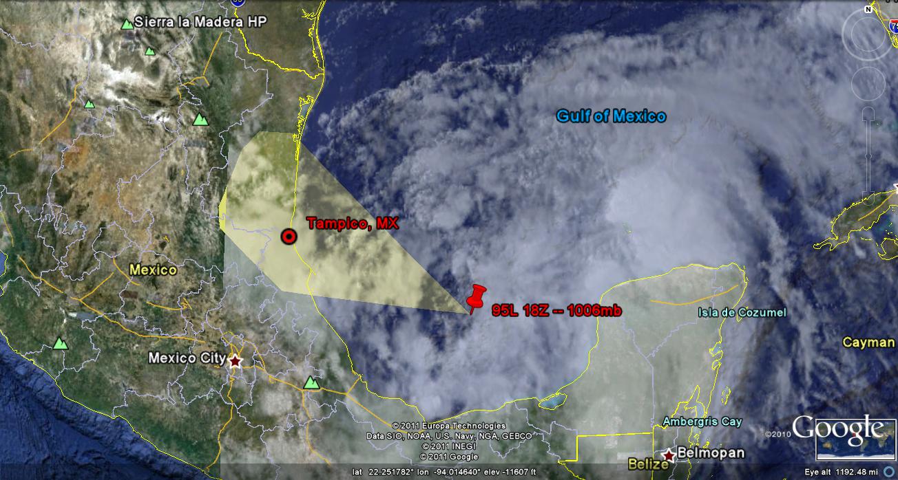 - Location: 20.6N 93.5W in the central Bay of Campeche