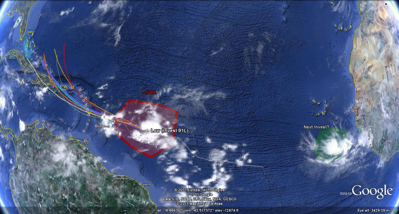 I will update again as recon reaches 91L or when advisories are initiated (likely at 11am or 2pm). While my internet was out, I was able to play around with a few new google earth tropical features from tropical atlantic. Let me know what you think of the graphic above. I have plenty of other graphics I can use. Have a good day!