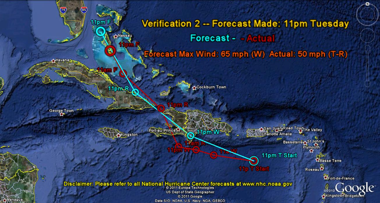Below is the second verification report on Emily. This report looks at how accurate my forecast written last Tuesday was.
