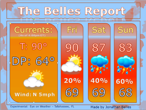 Slightly warmer than normal early Autumn day here in Tallahassee. A few clouds are rolling on by, but for the most part it’s going to be a quiet night. Some patchy fog is possible in the more fog inclined areas. Low overnight: 69°. This weekend will be dominated by a slow increase in moisture that will lead to increasing storm chances. The better weekend day to get outside will be Saturday. Hit and miss showers and storms will be common on Sunday across north Florida.