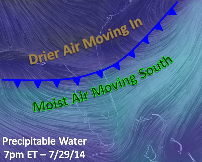 Drier air is filtering in to a lot of places this evening. For most of us east of the Rockies, this is a good thing….and I am not just talking about here in Florida. Dry air has also leached into 93L today, which is good news so far for the northern Lesser Antilles.