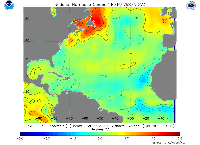 The overall pattern has been for east coast troughing. This scares me a bit for this fall since troughs tend to kick systems from the Caribbean and Gulf of Mexico northeastward. That spells a bad pattern for Florida, Cuba, and possibly the Yucatan if storms can form west of there. If you like cooler weather, you may like this winter if this pattern holds. Again, when and where isn’t part of the NOAA forecast but this has been a persistent pattern that has to be noted. It has limited Arthur to the sounds of North Carolina and kept Bertha off shore.