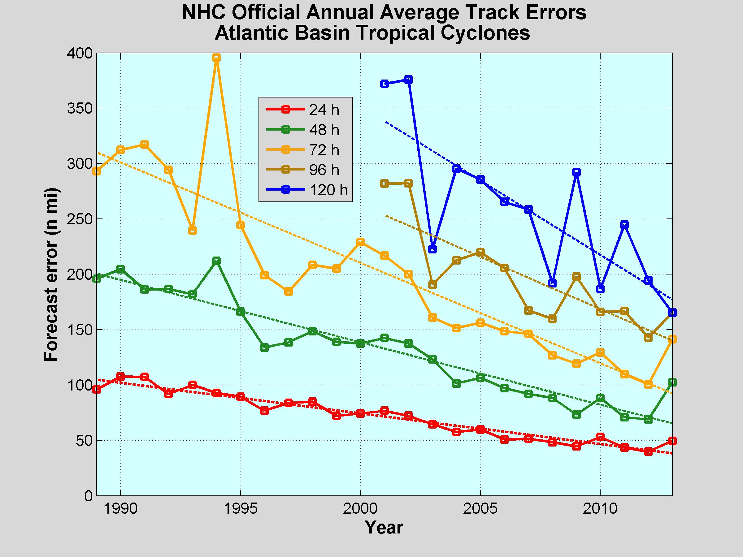 Continual research is being done at research universities around the world. Continual research continues from the Hurricane Hunters from both NOAA and the Air Force. This research has driven down model error rates in both track and intensity. All of the models have been upgraded in the last decade, and new models are being developed. HRRR will go operational next month for near shore and on land cyclones. Unfortunately, intensity models have not improved nearly as much as track models.
