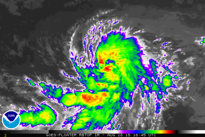 Early models even a couple of days ago alluded to the possibility that this fourth tropical storm of the season may not be a tropical storm for long. Even in the hour or two since the 5pm advisory, winds may have increased. A clear curved band has set up from the north clockwise to the southwest side. SHIPS guidance shows about a 50/50 shot at minimal rapid intensification.