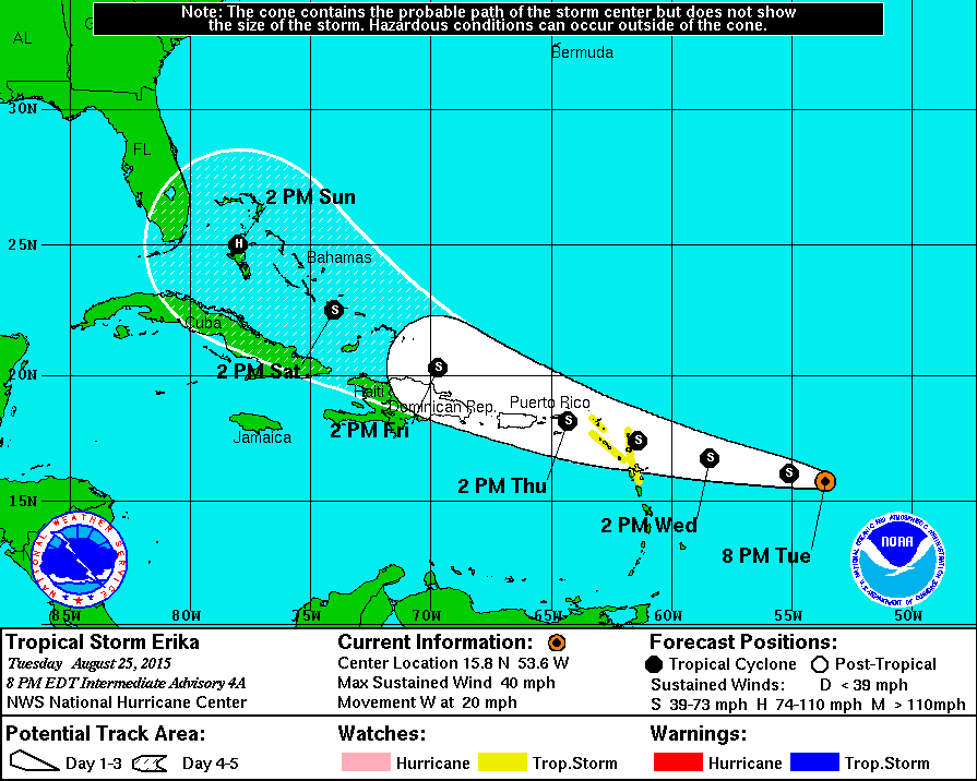 Tropical Storm Erika Has An Uncertain Future with Possible US Impacts