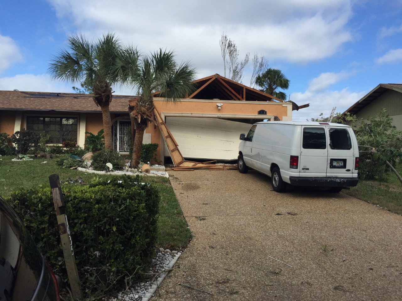 A common theme in the damage pictures I have seen in the last week or so is that garage doors continue to be the weak point in a home. Without reinforcement, wind often enters through the garage door into the garage where it gets ‘stuck’. This wind and the added pressure has to go somewhere. With air still coming in through the now wide open garage opening it cannot go back out that way, so usually it goes up. I’ve seen evidence of both garages popping like a small explosion and garage roofs peeling off. Relatively cheap garage door reinforcement systems are available at home improvement stores such as Lowes and Home Depot. They could save your homes from major damage.